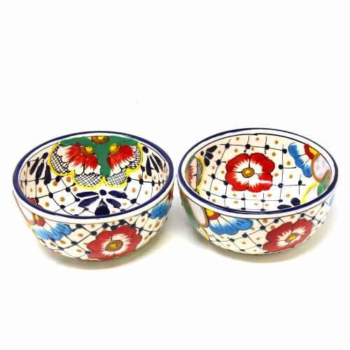 This traditional Mexican pottery is crafted and hand painted by artisans in Mexican using traditional pottery technique. Each piece is highly textured and unique -- these pieces are gorgeous, yet very functional. Lead-free, dishwasher and microwave safe.