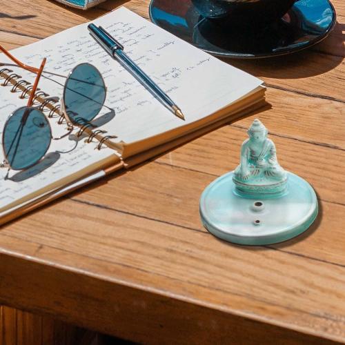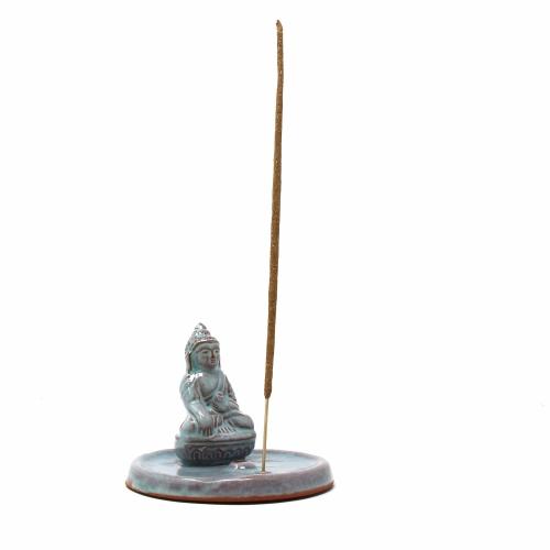 This charming 3 inch diameter ceramic incense burner is made with a seated Buddha or Enlightened One.