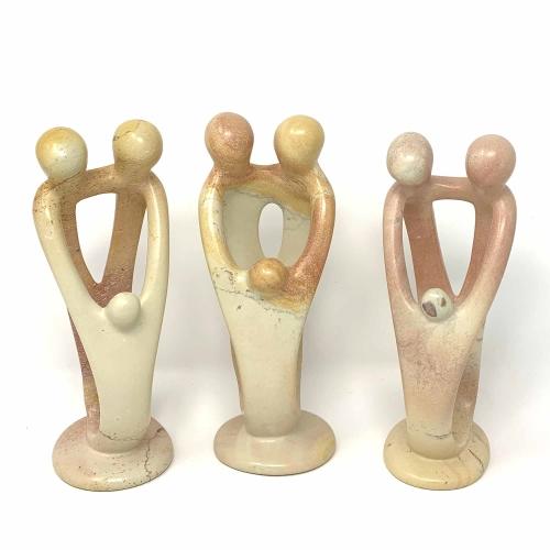 Natural 8-inch Tall Soapstone Family Sculpture - 2 Parents 1 Child - Smolart