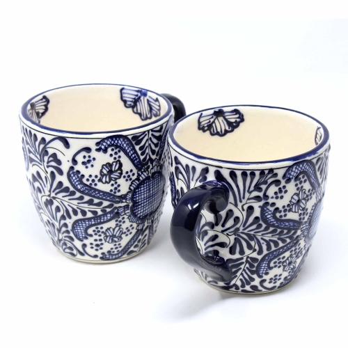 Rounded Mugs - Blue Flowers Pattern, Set of Two - Encantada
